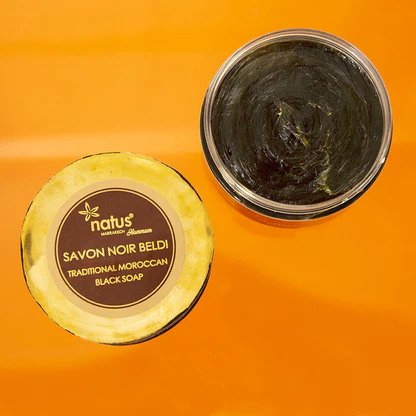 Savon noir authentique fabriqué selon la tradition ancestrale marocaine à base d'huile d'olive et d'olives noires broyées. Texture onctueuse et fondante. Parfait pour le rituel du hammam, il prépare la peau au gommage en éliminant les cellules mortes et en purifiant les pores. Enrichi en vitamine E naturelle. Sans parfum ajouté, hypoallergénique. Laisse la peau douce, lisse et éclatante. Produit végétal 100% naturel et biodégradable.